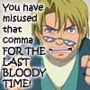 Description: angry face: you have misused that comma for the last bloody time!
