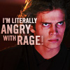 Description: anakin skywalker glowers. he is literally angry with rage.