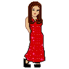 Description: little cartoon self in a party dress.